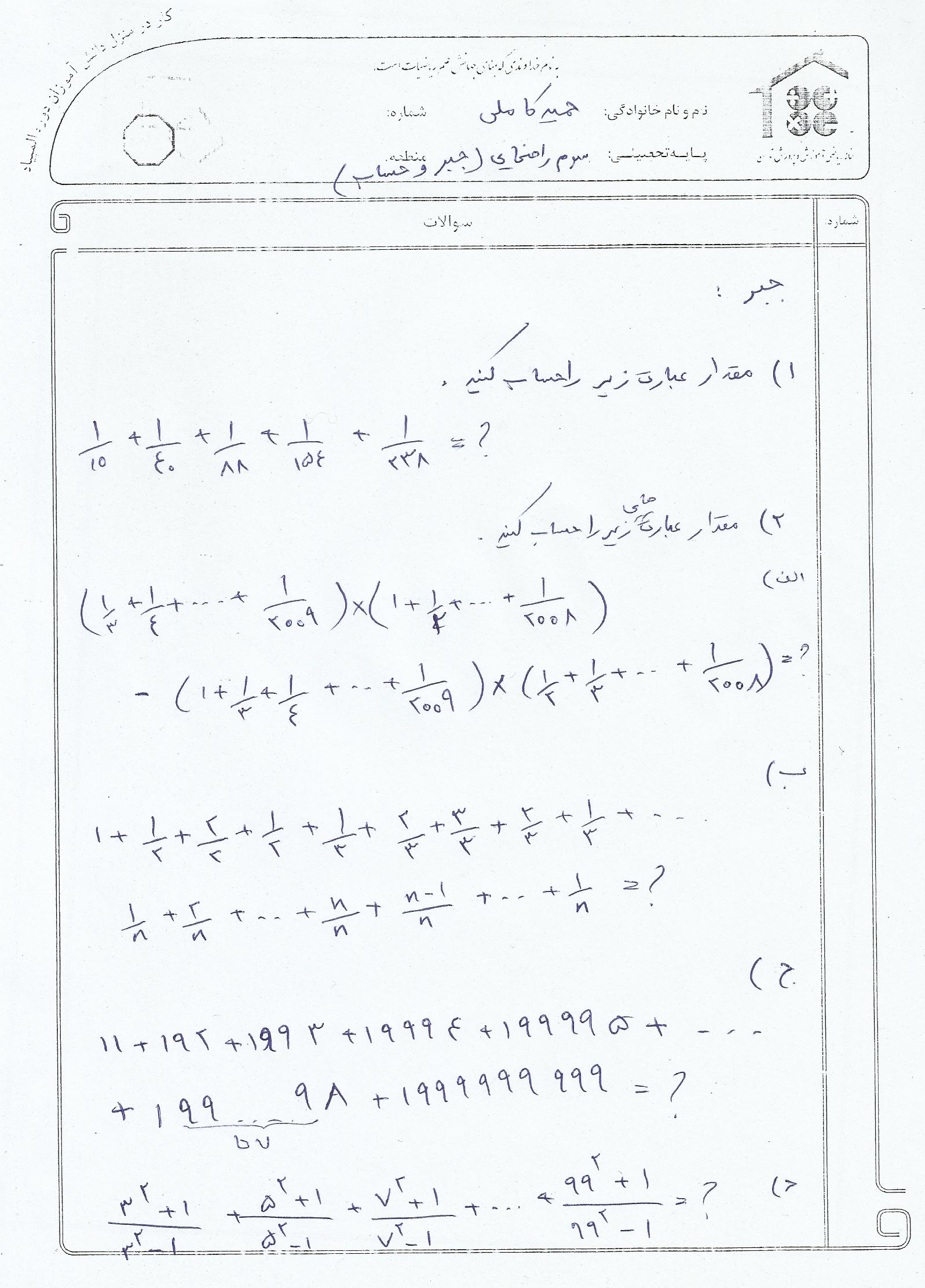 تمرین سری 1 _ جبر دانلود